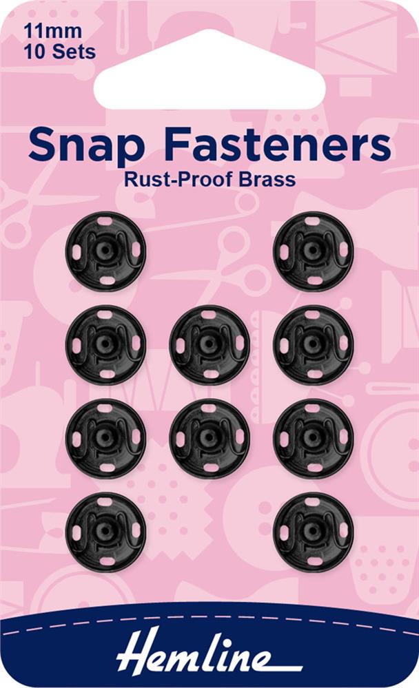 Hemline - Snap Fasteners Metal Sew On 11mm - 10 sets - Black
