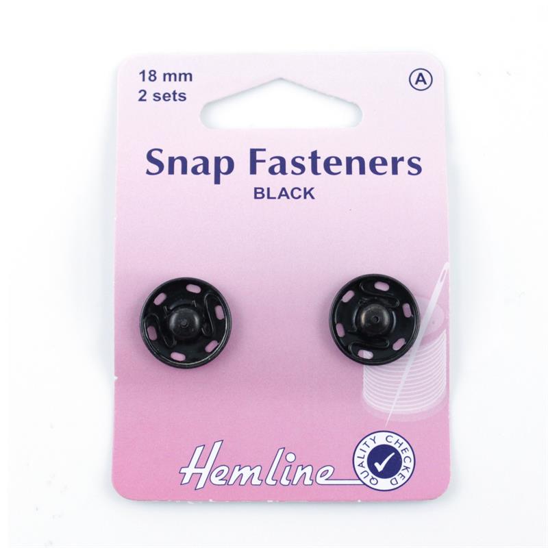 Hemline - Snap Fasteners Metal Sew On 18mm - 2 sets - Black