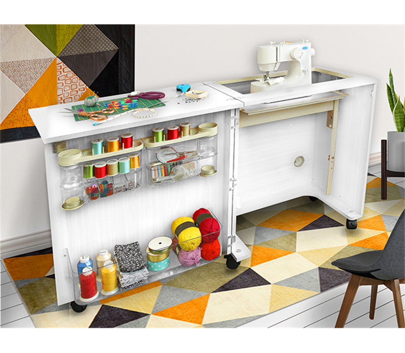 Horn - Old Style Crown Sewing Machine Furniture - White (Flat Packed)